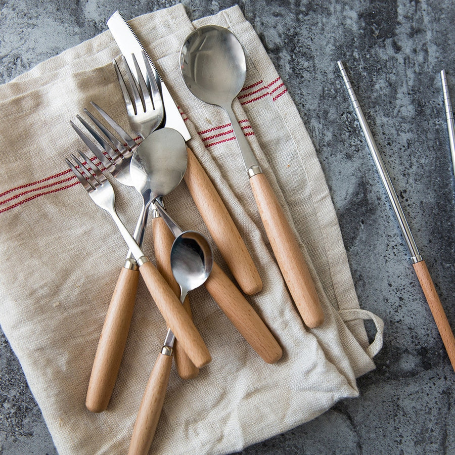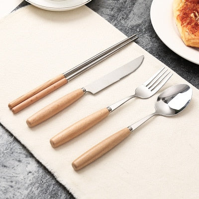 4/6PC Creative Wooden Handle Tableware Set